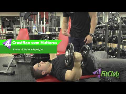 Crucifixo com Halteres, Supino Inclinado, Cross Over e Supino Declinado.